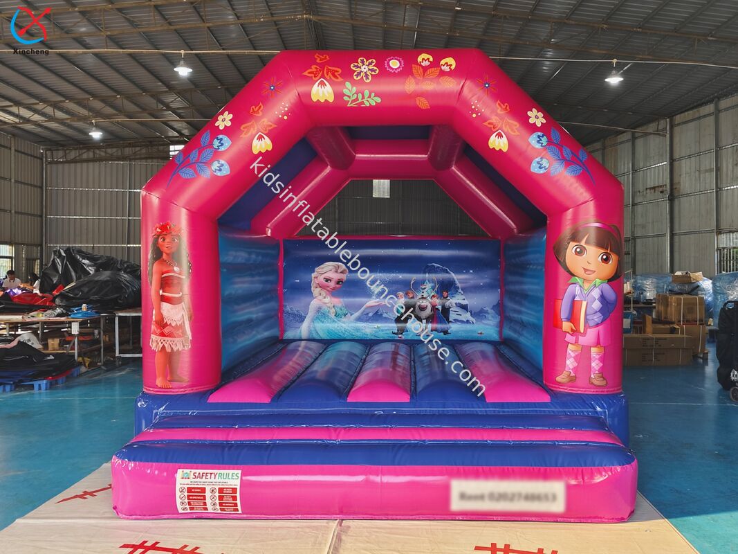 Профессиональный надувной батут с яркой розовой тематикой принцессы, разработанный специально для коммерческого использования и развлечения детей.