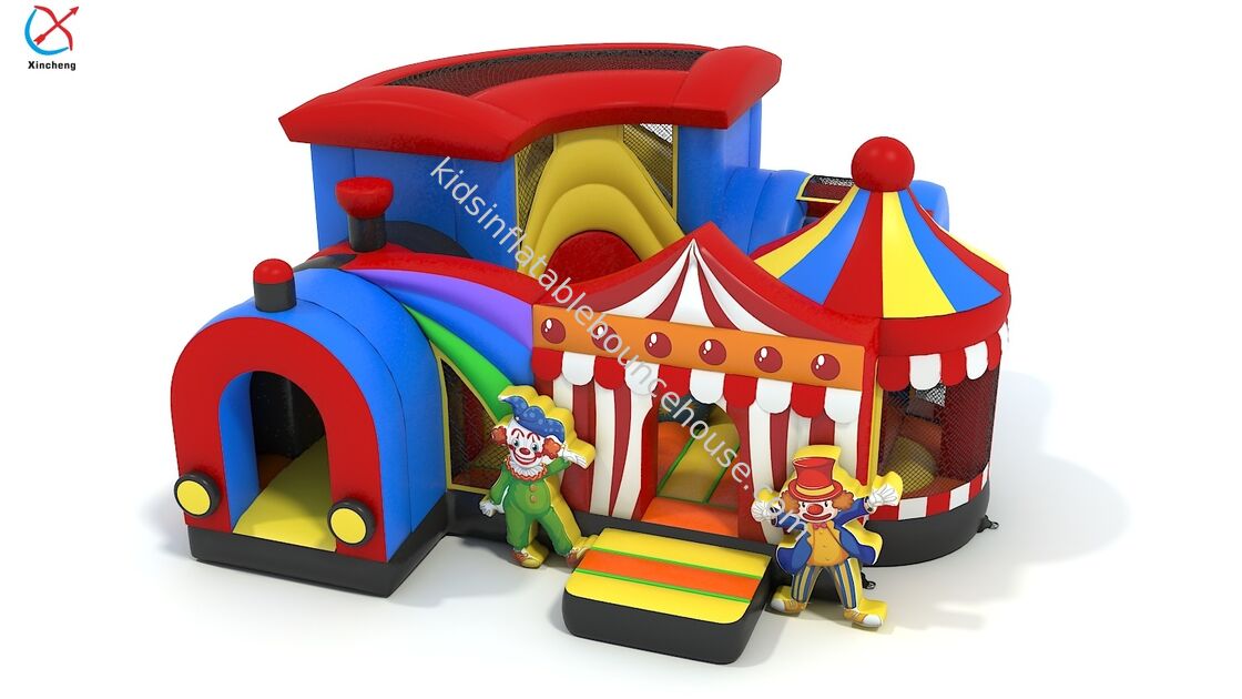 Коммерческий надувной замок-аттракцион «Город развлечений» с клоунами